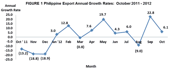Export receipts grew at a slower 6.1 percent to $4.408 billion in October from $4.155 billion a year earlier, and brought the 10-month tally to $44.475 billion – up 7.1 percent year-on-year.