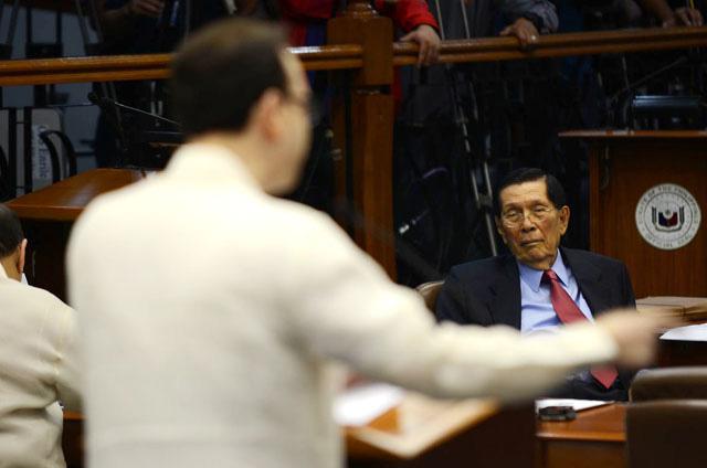 The rift between Senate President Juan Ponce Enrile and Senate Minority Leader Alan Peter Cayetano (foreground) became personal on Wednesday, with Cayetano even dragging Enrile's chief of staff in the issue. In response, Enrile bared a multi-million peso debt allegedly incurred by Cayetano's late father many years ago. Benjie Castro